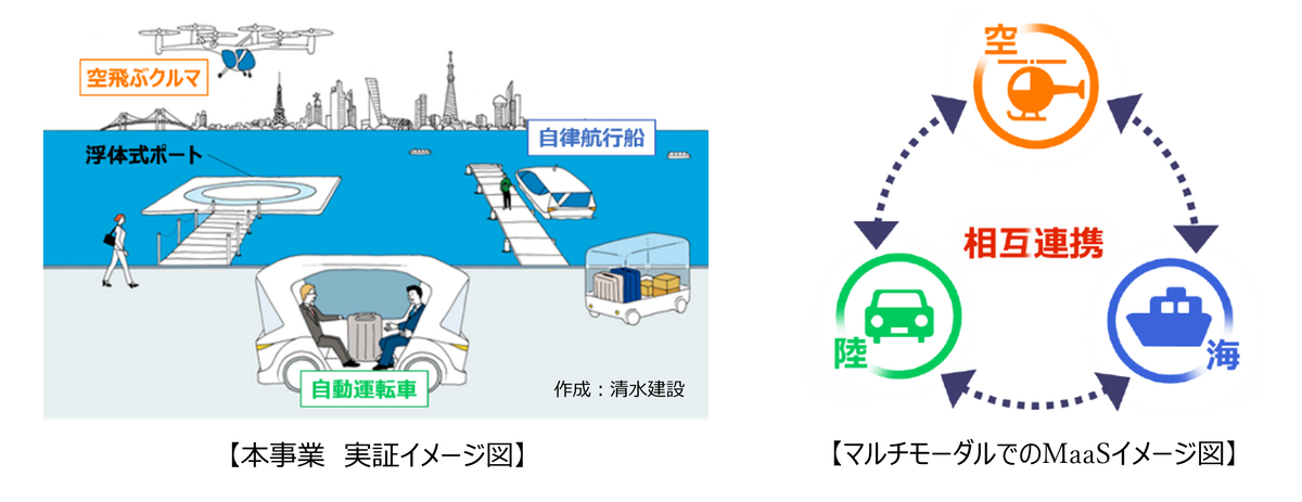 野村不動産株式会社(代表事業者、本社:東京都港区/代表取締役社長:松尾大作)、清水建設株式会社(本社:東京都中央区/取締役社長:新村達也)、ANA ホールディングス株式会社(本社:東京都港区/代表取締役社長:芝田浩二)、エアロトヨタ株式会社(本社:東京都江東区/代表取締役社長:加藤浩士)、株式会社Kidou Systems(本社:東京都墨田区/CEO:塩野晧士)、株式会社エイトノット(本社:大阪府堺市/代表取締役:木村裕人)、東京ウォータータクシー株式会社(本社:東京都港区/代表取締役社長:石井友章)で構成される事業グループは、東京都が実施する東京ベイeSG プロジェクト「先行プロジェクト」(※1) の令和5年度の”次世代モビリティ”の応募テーマにおいて、「空飛ぶクルマ(eVTOL)(※2) 用浮体式ポートを核とした、陸海空のマルチモーダル MaaS 実現に向けたシステムの構築及び運行実証」(以下、本事業)が採択され、2023 年10 月より事業を推進してまいりました。